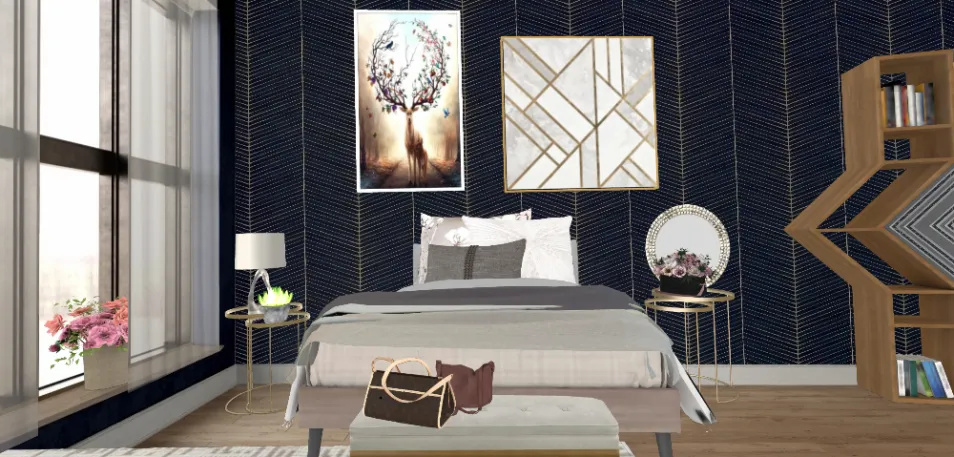 I've said it before in many occasions; for some reason I don't design bedrooms very often. And when I do try, usually at some point the bed turns into a couch and bedside tables into sidetables, and before I even notice it, I'm doing a living room... 😄😂😂😂🙈🌼🌼 But this time I managed to make it all the way to publishing, so here you are, a rare occasion of a finished bedroom 😄🌹🌹🌹🌼💞💞💞