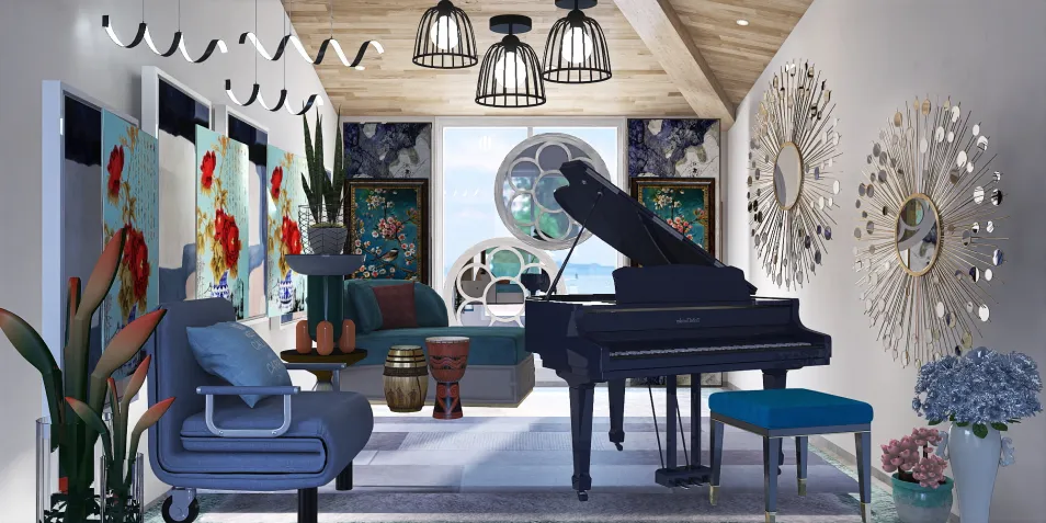 the overall theme is within the different shades of the color blue as well as echoes in the melancholy sounds & pitches of the piano itself