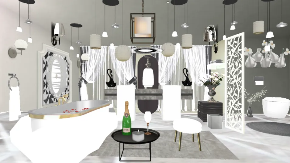 Relax in this Orenital modern design that incorporates a pallet of white, black and grays.