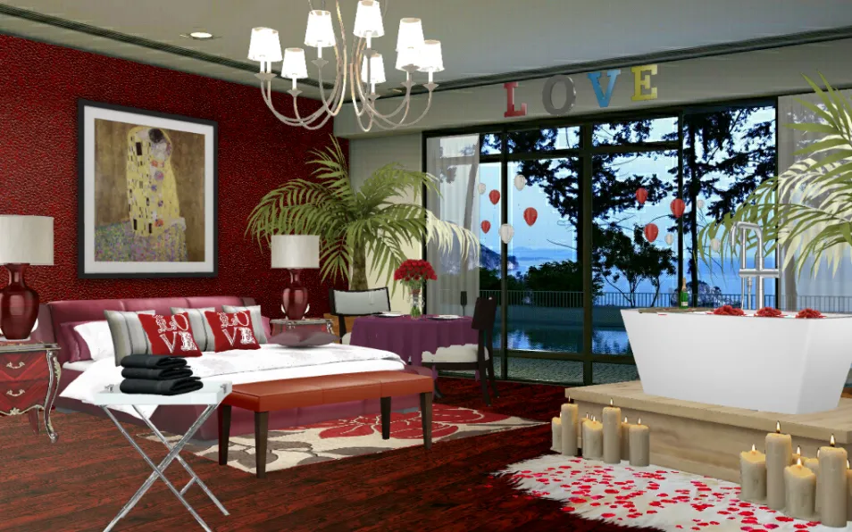 Here you will see a nice romantic hotel suite overlooking the beach over the ocean there are a few balloons to welcome the newlyweds hope you guys like it.😀