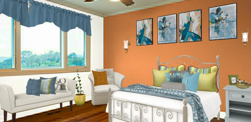 Details describing the room: This is a very vibrant, cheerful, refreshing, bright, relaxing, & welcoming room. This bedroom could be used as a guest room or as your very own! Side note: Experimenting with accent walls 😊
