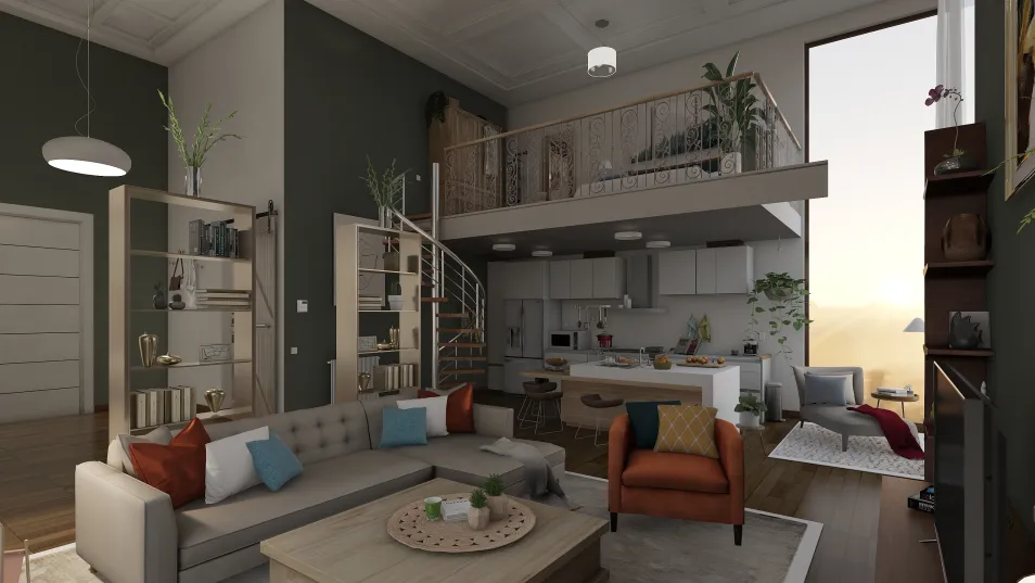 Apartment with two rooms. Open space with large windows . Every plan has large roof.