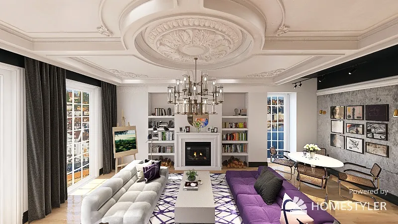 This black and white classic design was decorated into Bauhaus style. I added colorful elements to this interior. I made accent furniture and decor. I also divided the living room into several functional areas such as a reading area, a dining area, a bar and a TV. this apartment is suitable for a couple who likes to cook, receive guests and is fond of reading books