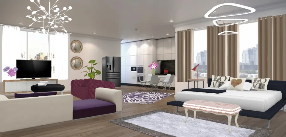 my lavish open plan apartment. This will be my home away from home at the beach 🐚 I never use purple cause it's not my favorite colour but I like this...