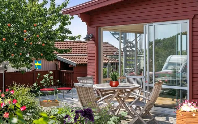 What could be more Scandinavian than a falu red house, a big apple tree and garden roses? Perhaps the Swedish flag. 🇸🇪