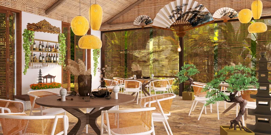 This restaurant is inspired from BAHAY KUBO and Chinese decorations, which is to be located in the Philippines. Chinese culture has a great influence in the Philippines. In fact there is a place in the country called Binondo also known as Chinatown which is a location for businesses of Chinese merchants in the Philippines.