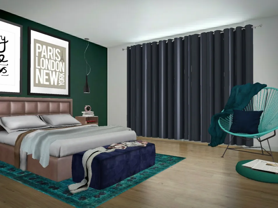 Green and blue are the star colors in this cozy room. A wonderful place to relax and sleep really REALLY well. Behind the curtains you will find nothing but evergreens and some fresh snow! 🌲❄