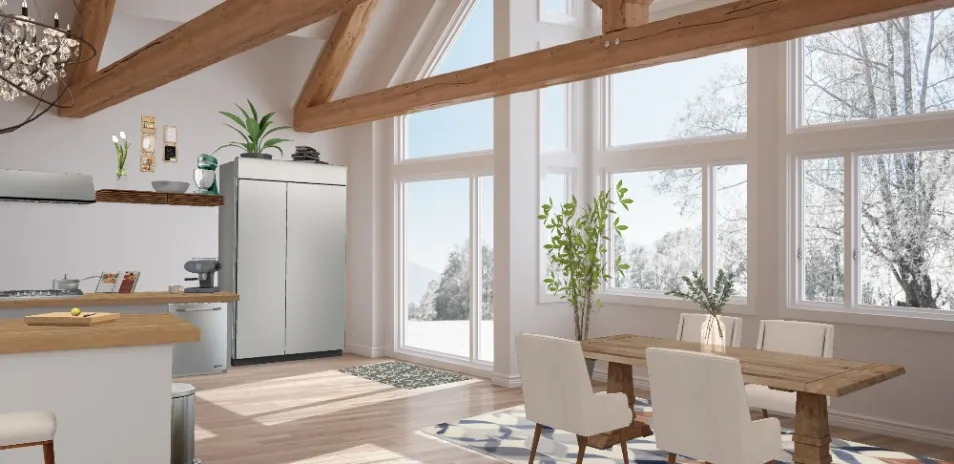 Everyone hangs out in this country kitchen. Woods and white with lots of light