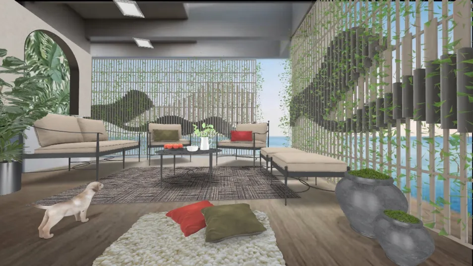 In this picturesque room, even my little dog admires the sea through the green of the plants. It reminds me of the summer of 2019, when we could breathe without masks.