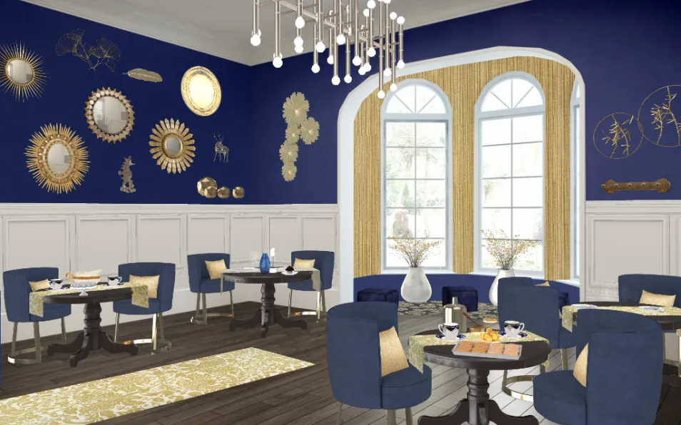 electric blue and gold cafeteria
