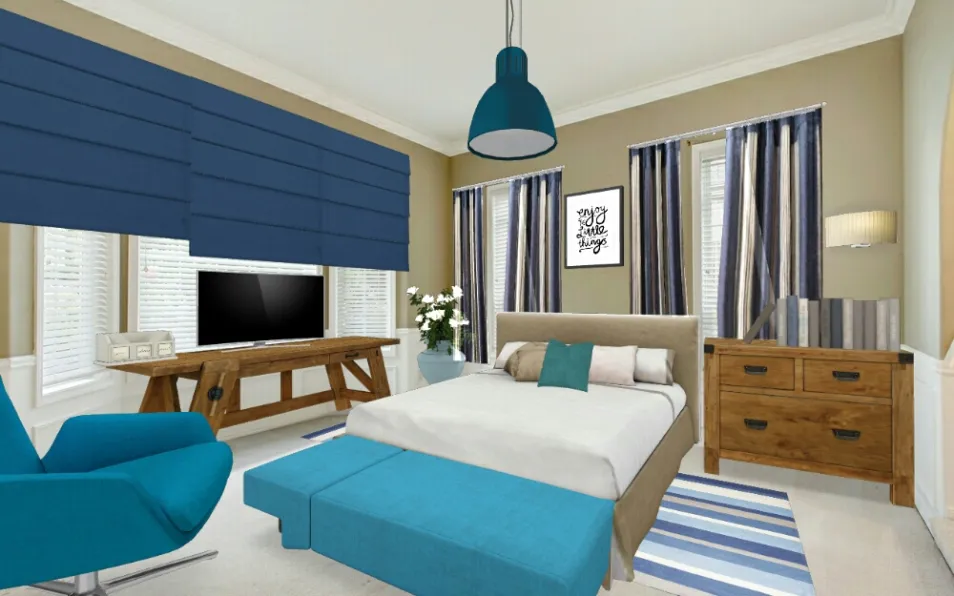 a lot of blue and cream