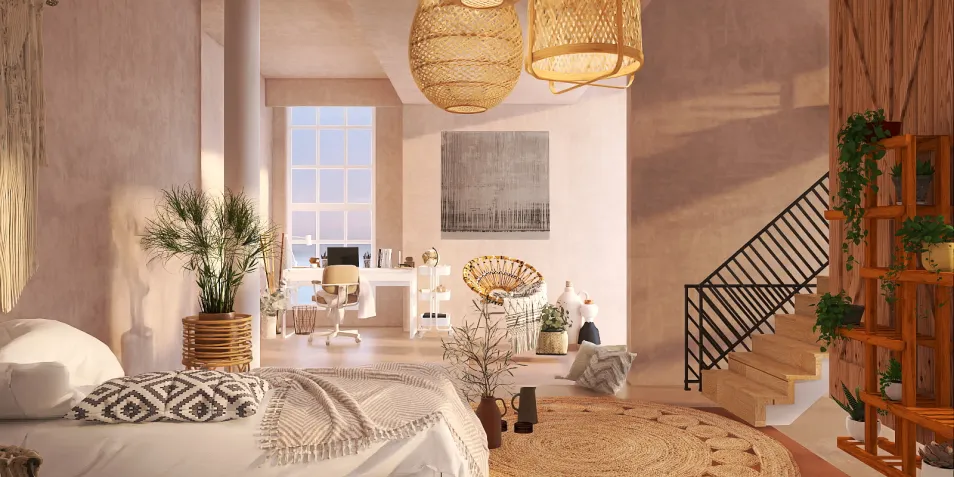 This bedroom is a beautiful southern bedroom, that has a lot of earthy tones. Come sit and enjoy this sunny room!