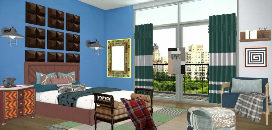 inspiration for this bedroom for this bedroom came from the curtain, then I started playing with patterns and ended up with a boho design.