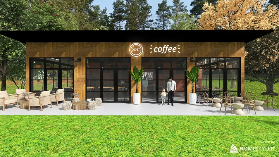 Pequeña cafetería ubicada en el parque, perfecta para un descanso al aire libre o leer un libro. El edificio se compone de dos volúmenes, uno vidriado y permeable donde el interior se mezcla con el exterior, y un volumen duro donde se encuentran ubicados los servicios. La transparencia del edificio fue pensada para revelar la extensión del exuberante jardín circundante y, que a su vez, cree un escenario donde los transeúntes pueden captar una visión clara del interior del local, vinculando todo tipo de actividades.