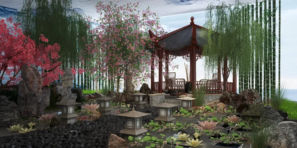 Zen garden for a peaceful walk or stay. I had to improvise for the water and sky because the paint tool doesn’t work for this room! 😂😛❤️