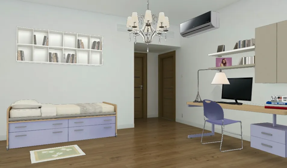 ottima camera per ragazze dotata di scrivania e letto con cassetti. Pur essendo una bambina di 9 anni è stato facilissimo progettarla.