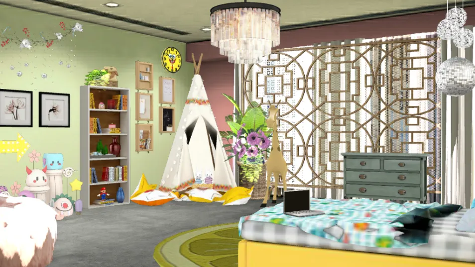 yellow, green, pink, and blue chill room
