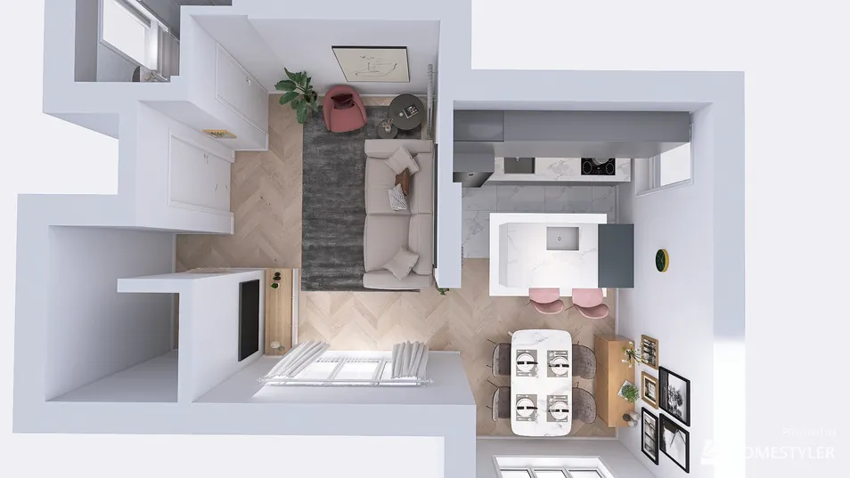 una casa piccolina dove ogni centimetro fa la differenza. Una coppia giovane ed accurata, una richiesta di stile fresco, ed elegante allo stesso tempo.
