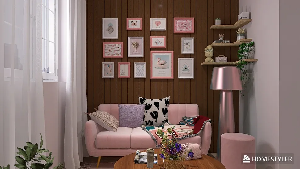 Embrace the allure of a pink apartment, where pastel details dance in harmony. The cozy living space, adorned with framed art and a plush sofa, whispers stories of elegance. In the kitchen, soft hues and playful decor invite culinary creativity, creating a dreamy retreat for the soul.