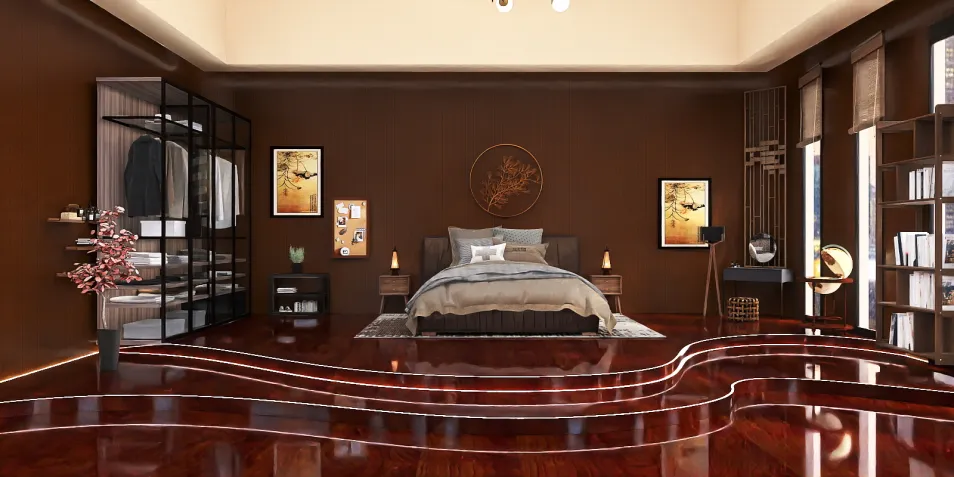 The bedroom is made in chocolate color, you can trace oriental motifs. It is both cozy and luxurious at the same time. Enjoy the beauty)))