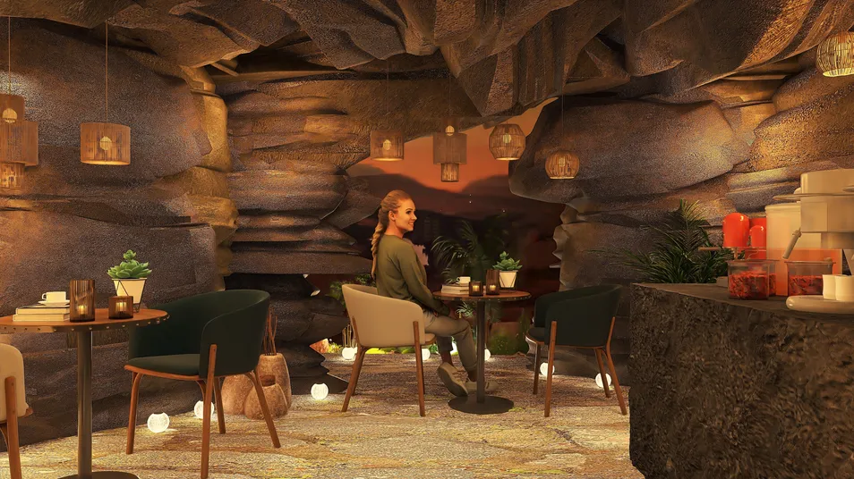 В уютной кофейне, укрытой в объятиях скалы, ароматный кофе сливается с закатом, создавая феерию ощущений. Здесь каждый камень шепчет истории, а свет фонарей танцует на стенах, как мечты, превращаясь в реальность в этот волшебный миг.