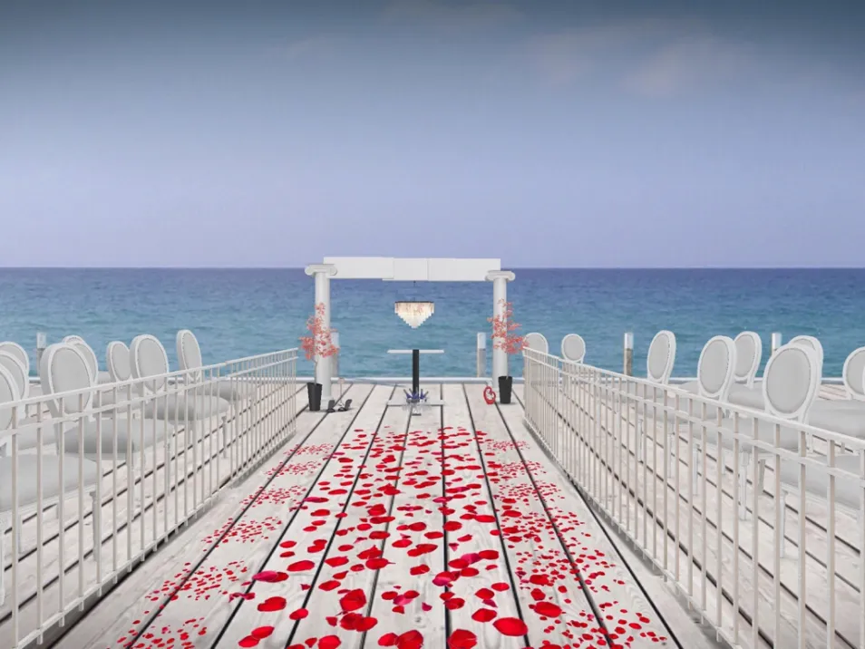This is the perfect place for a wedding because you are right next to the water many artifacts by the posts. The red silky petals you walk across, and the two chairs next to the posts are for the parents. The fence is just so people or kids don't walk on the runway or isle. But this is so romantic and if you love my design make sure to like it. I hope I win the contest. This really is the perfect place for a wedding!🌹👰💋🌹