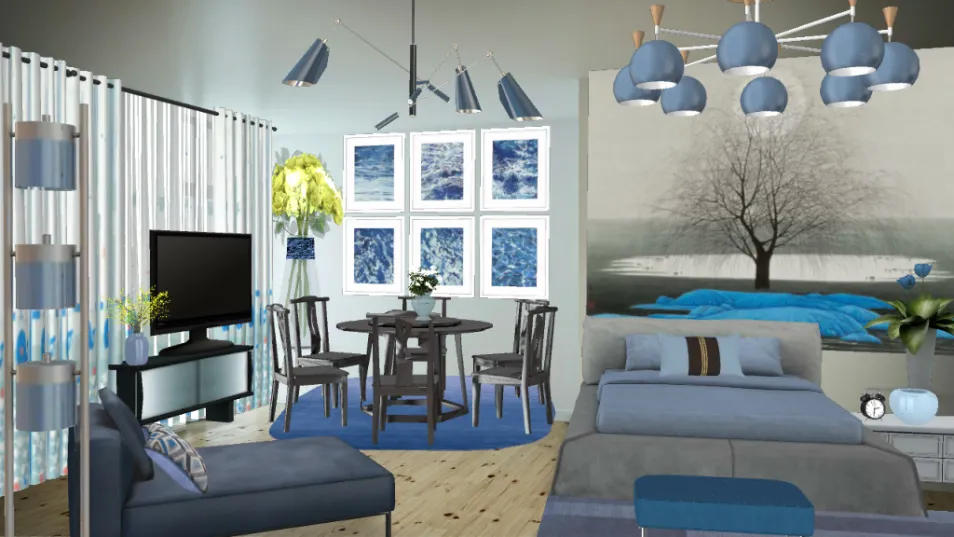 Studio leaving can be enjoyed when packed with modern furniture accented with shades of blue decor.