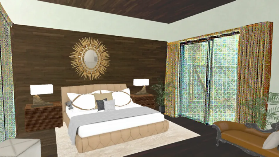A cosy bedroom with tones of beige, brown and tans. The mod country finsh gives off a comforting vibe, similar to that of a hug.