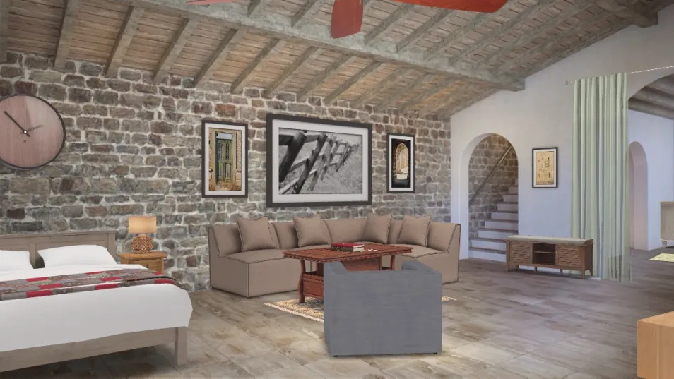 Are you still living in your mother's basement? If this is your mother's basement I would be too! There's a nice little bedroom with a small space for entertainment. Off to the side is a mini kitchen and dining area, a full sized bathroom, and a bigger living space. I would never want to l leave this basement!
