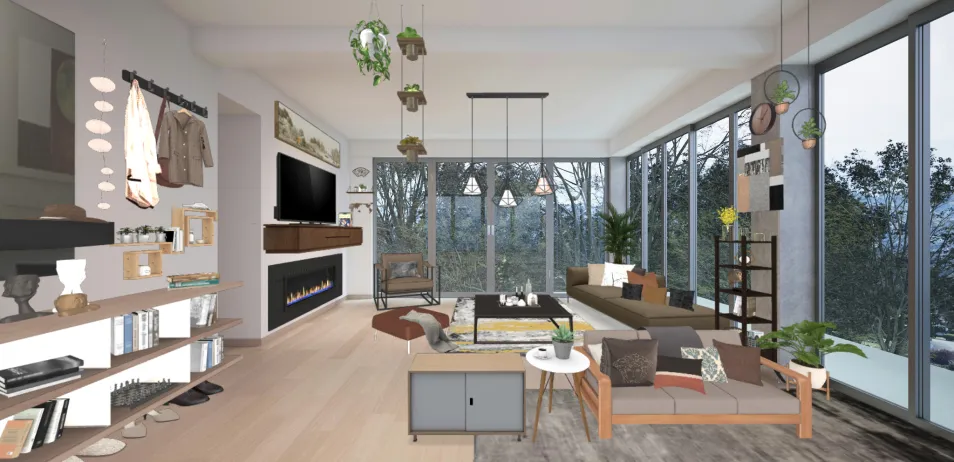 Take a sip of coffee with this cozy inside living room foresty and woody vibe. ☕