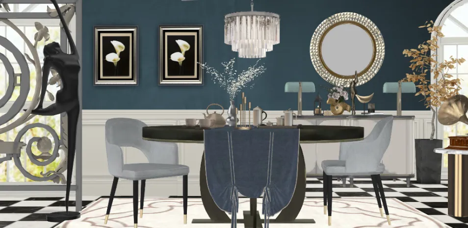 1920s inspired. Completely renovated the dining space and made the table smaller. This turned out better than expected! But I found it hard to name this. 😂 Thanks, dear Karen! 💕💫💫 PS. I renamed this 4x already 😂😂