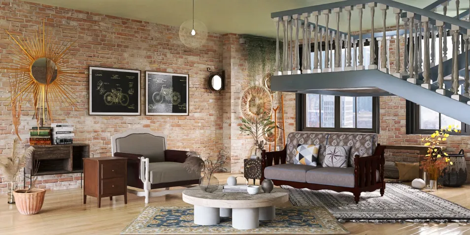 industrial style loft with a rustic earthy living room decor. @jennifer_cole