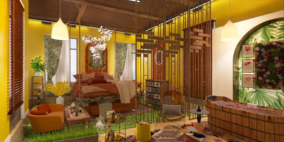 •💛yellow •💚green •❤red •🧡orange •🤎brown ●amazing combination● #2023 #Hanna'sstyle #bed #bath🖤