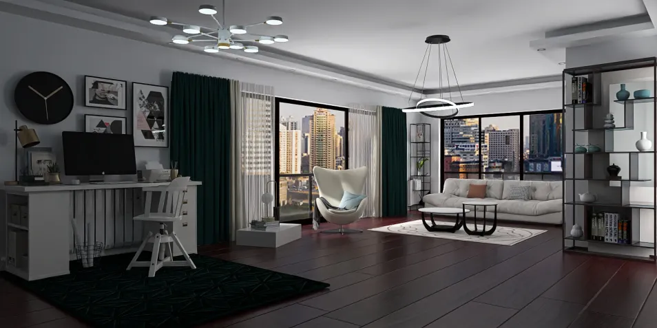 дизайн интерьера в современном стиле (гостиная и рабочая зона )