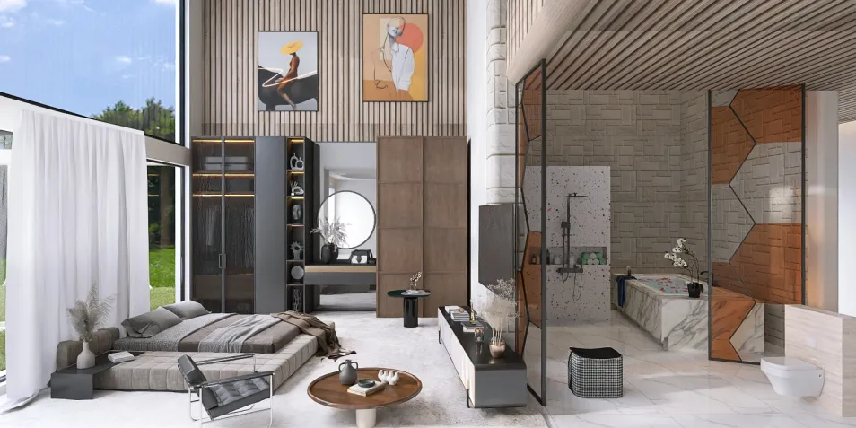 Neste espaço, a luz natural dança com cada superfície. As texturas se entrelaçam, criando um diálogo entre o moderno e o aconchegante. A harmonia das cores convida à reflexão, enquanto o design modular sugere uma vida em constante transformação.