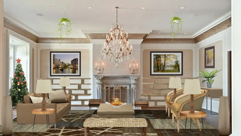 pretty cream and brown colors can make a living room seem so cozy and warm. Have a blessed Holiday Season.