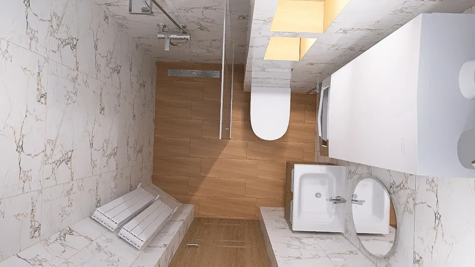 In this serene sanctuary, sleek lines meet warm wood accents, creating a harmonious blend of comfort and sophistication. The marble tiles whisper luxury, while the understated fixtures invite calm. It's a space where simplicity reigns, yet every detail speaks volumes of refined taste.
