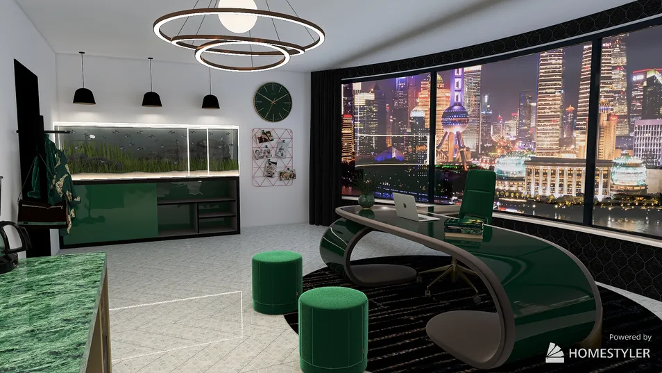 My friend saw that I did interior design. She loves the color emerald and she wanted an office.