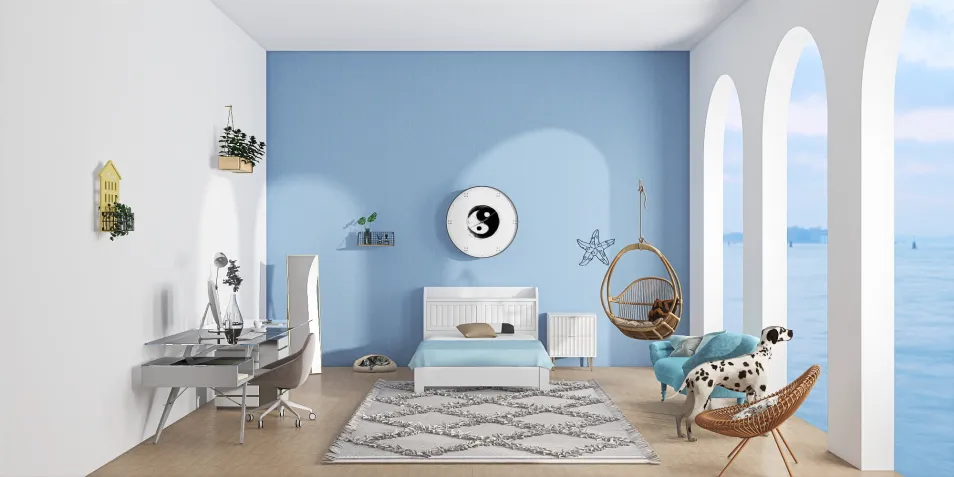 This is my bffs dream room. She loves the color blue cats and dogs and the ocean. This is perfect for her.