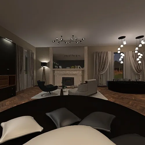 This room is a modern/art deco/ master bedroom with fireplace area / sitting area & bathroom area/shower/toilet / 2 bathubs & walk - in closet.....