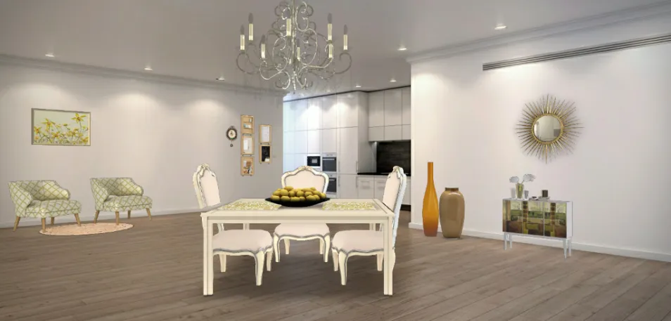My design involves bright colors and abstract patterns that work hand in hand. This dinning room offers just the right touch to brighten the day.