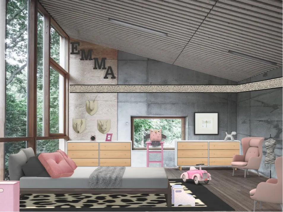 Little Girls Pink/Animal Pattern Themed Bedroom In A Modern Style House.