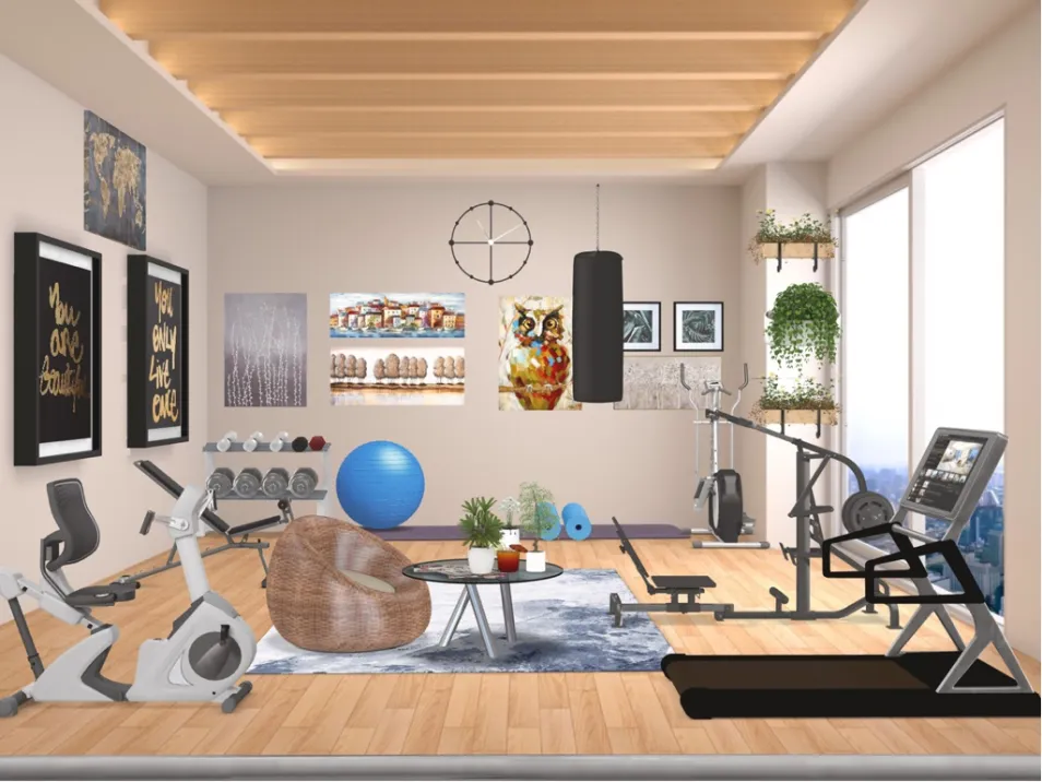 Work out in this room—that is, whatever working out means for you! Dance, running, biking, gymnastics, boxing, yoga, weightlifting, anything!