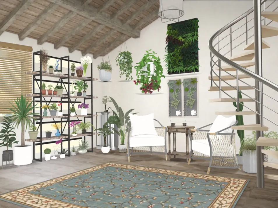 This is a rustic style garden room full of colors and of course, plants!