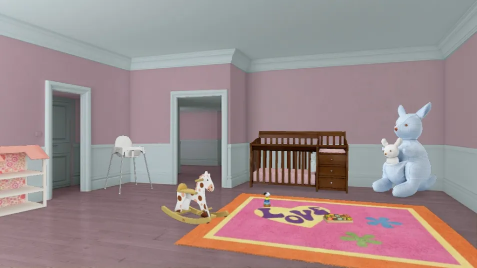 a baby girls best room in the house filled with tiny toys fit for her size and a crib along with a changing table both connected a pink rug filled with toys that will make you and her laugh this baby won't be going anywhere anytime soon