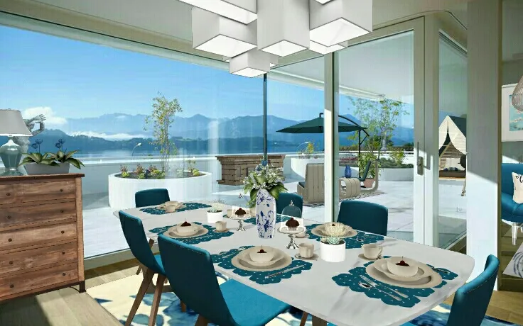 Blue, and more blue in the mountains. Dining made fun