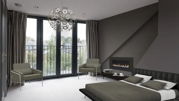 Selected blend of dark colors such as green, brown and black creating an environment without noise, without ornaments highlighting the cleanliness and purity between the sheets and the room with a minimalist, modern style overlooking the traditional Stockholm houses