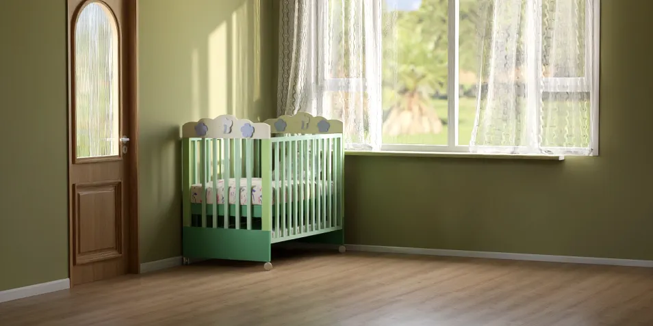 阳光透过窗帘洒在空荡的婴儿床上,淡淡的绿墙映衬出一股无声的孤独。窗外鸟鸣缭绕,仿佛在低语。这个空间,虽静谧,却弥漫着未曾书写的故事。