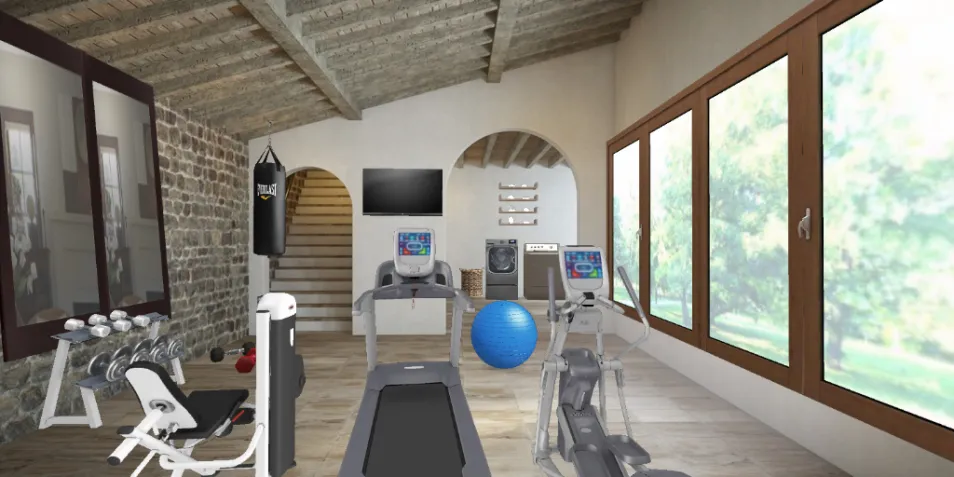 habitación olvidada en una casa, transformada en un gimnasio y cuarto de lavado