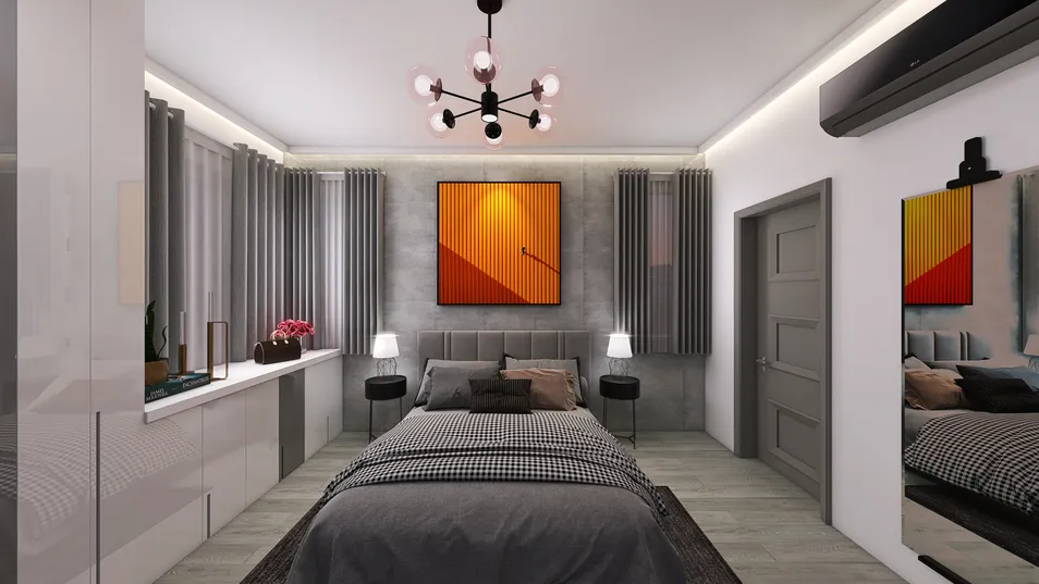 Habitación BK fue un proyecto por demás interesante, contábamos con un espacio con ciertas limitaciones donde debíamos aprovechar cada centímetro de el. Los closets fueron pieza fundamental del diseño porque la pareja solicitó que el espacio para almacenamiento fuese lo mas grande posible como para poder ubicar, no solo vestimenta sino también lencería, zapatos y efectos personales. Otro de los requisitos era que toda la paleta de colores fuese lo mas neutra posible para que su obra de arte preferida resaltara con todo su esplendor y fuese la pieza central del dormitorio.
